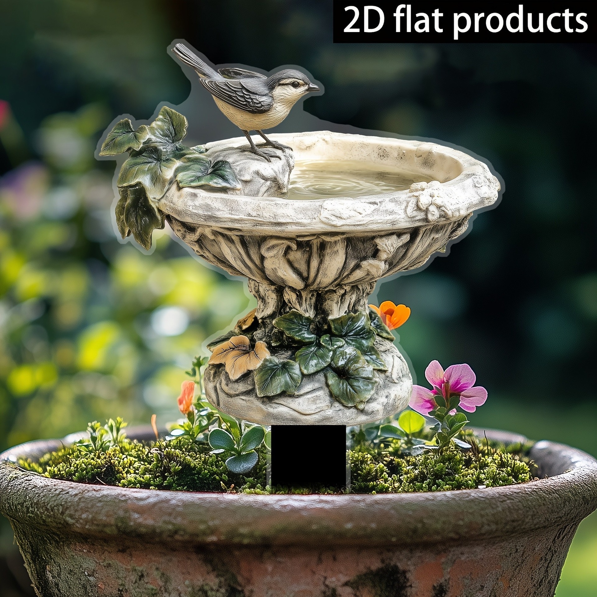 2D プレーン、2D プレーン 1 個、バードバス、フラワーポット装飾サイン、アクリルガーデン装飾