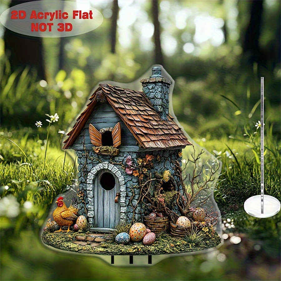 2D フラット印刷アクリル田舎の小屋の庭の杭屋外中庭の庭の芝生鉢植え