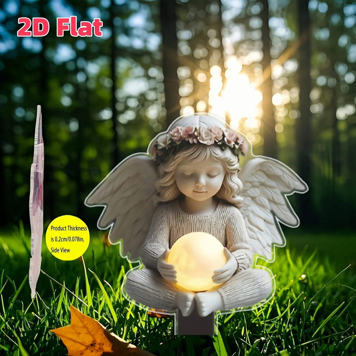 レトロな2Dフラットエンジェルガールガーデンインサートカード、発光ボール付き - アクリル屋外芝生アート、なし