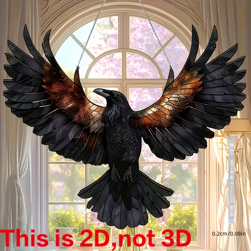 1 個ボヘミアンスタイル 2D アクリルカラスペンダント - 鮮やかなオレンジと黒の羽模様、防水性と耐傷性