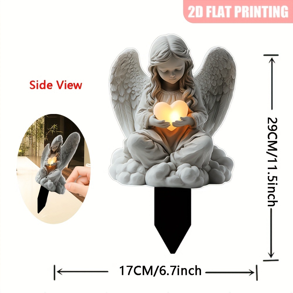 2D プレーン、永遠の光の天使とハート アクリル ガーデン フェンス、電気不要 (6.7 インチ X1)