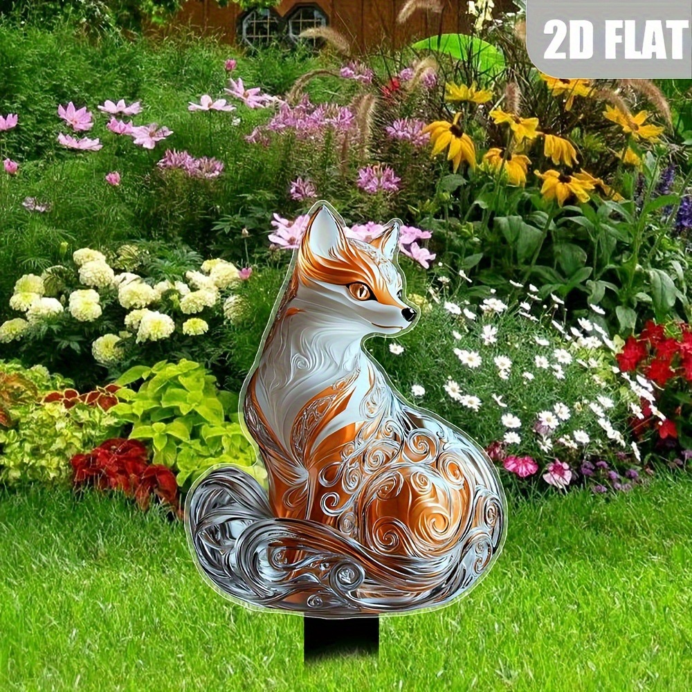 2D フラット装飾ガーデンサイン、ホリデーギフト、クリスタルフォックスガーデンプラーク、4.64inch x 8。