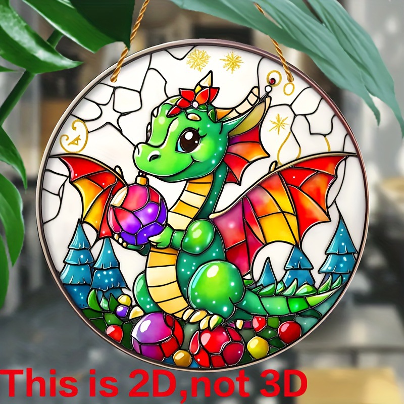 2D フラット、1 個のカラフルなドラゴンとクリスマスツリーデザインのアクリルドラゴン吊り下げ装飾品 - イースター、感謝祭