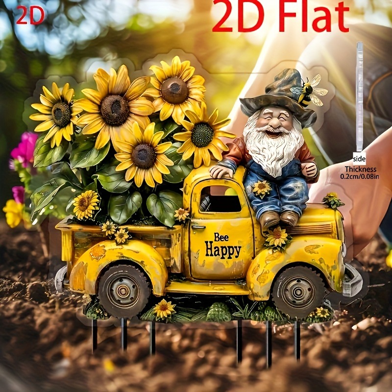 2D フラット、1 個、2D フラットアクリル蜂ノーム老人トラック庭の杭、アクリル植木鉢
