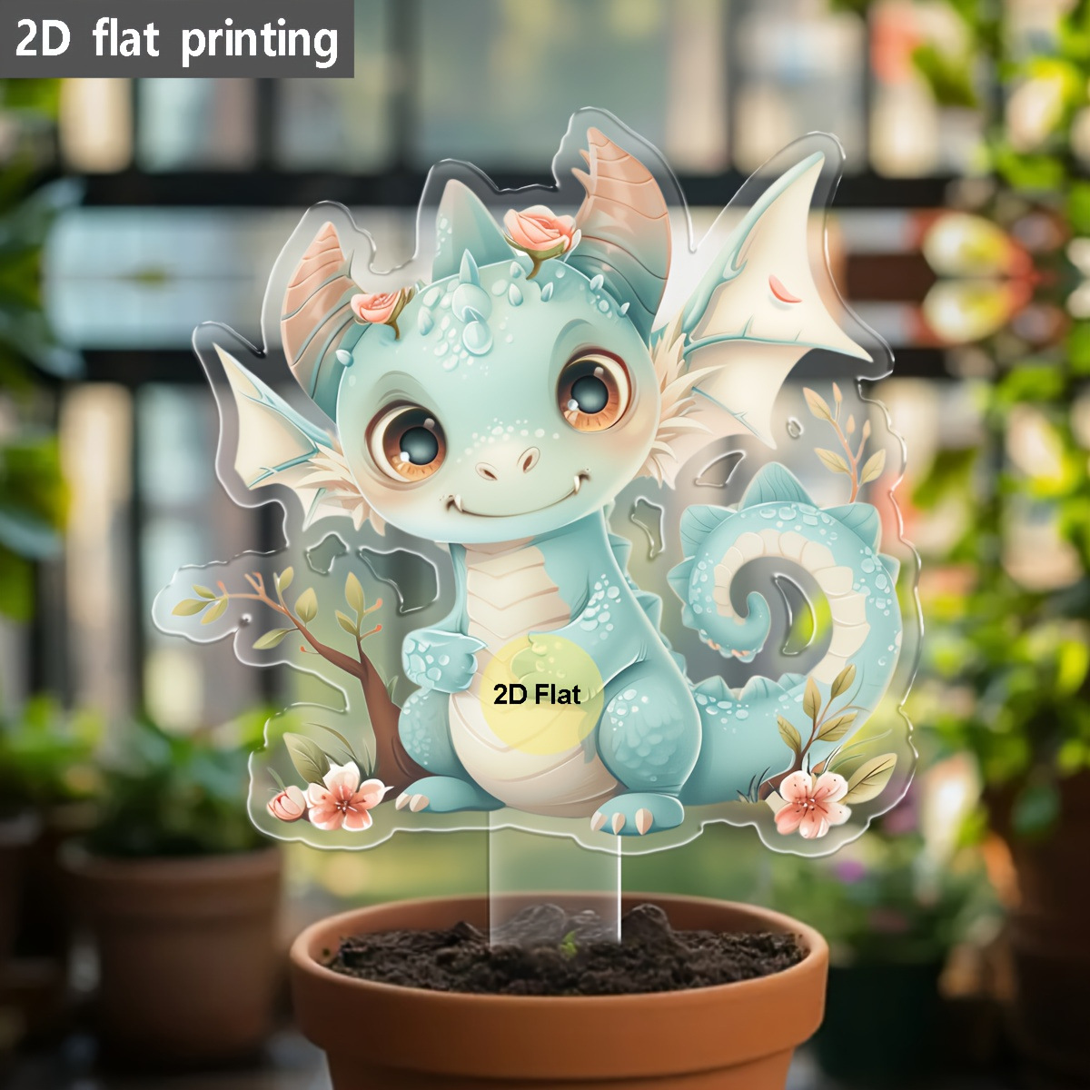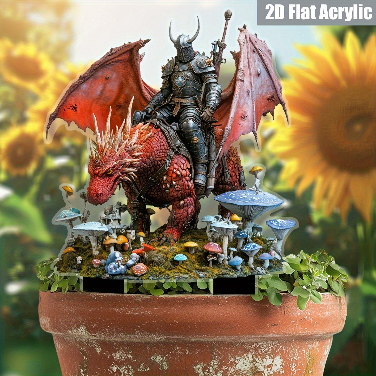 2D フラット、1 パック、騎士とドラゴンのアクリル ガーデン インサート、屋外装飾植木鉢に適しています。