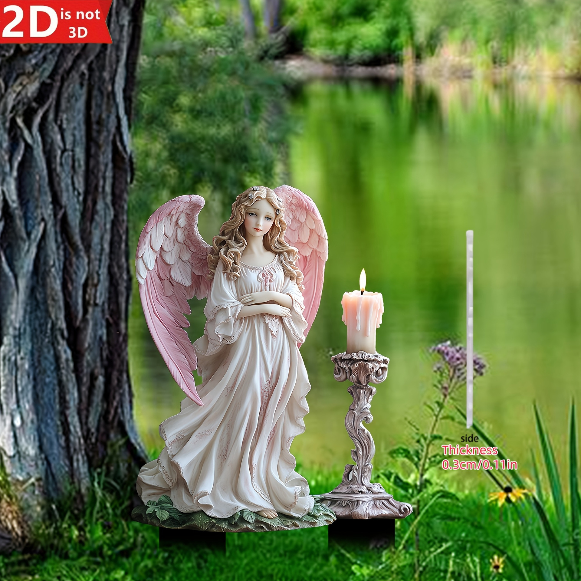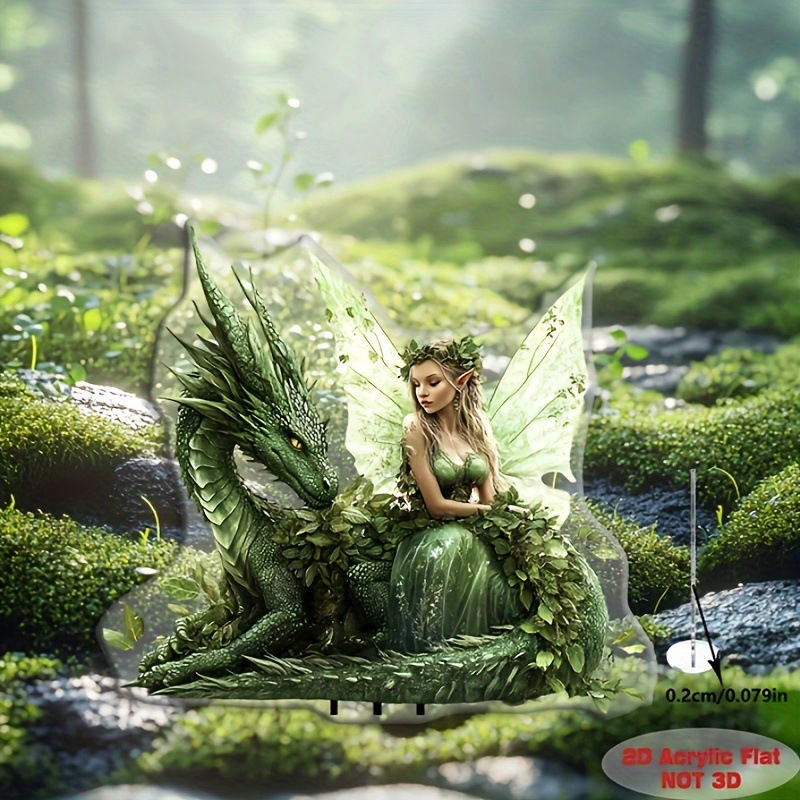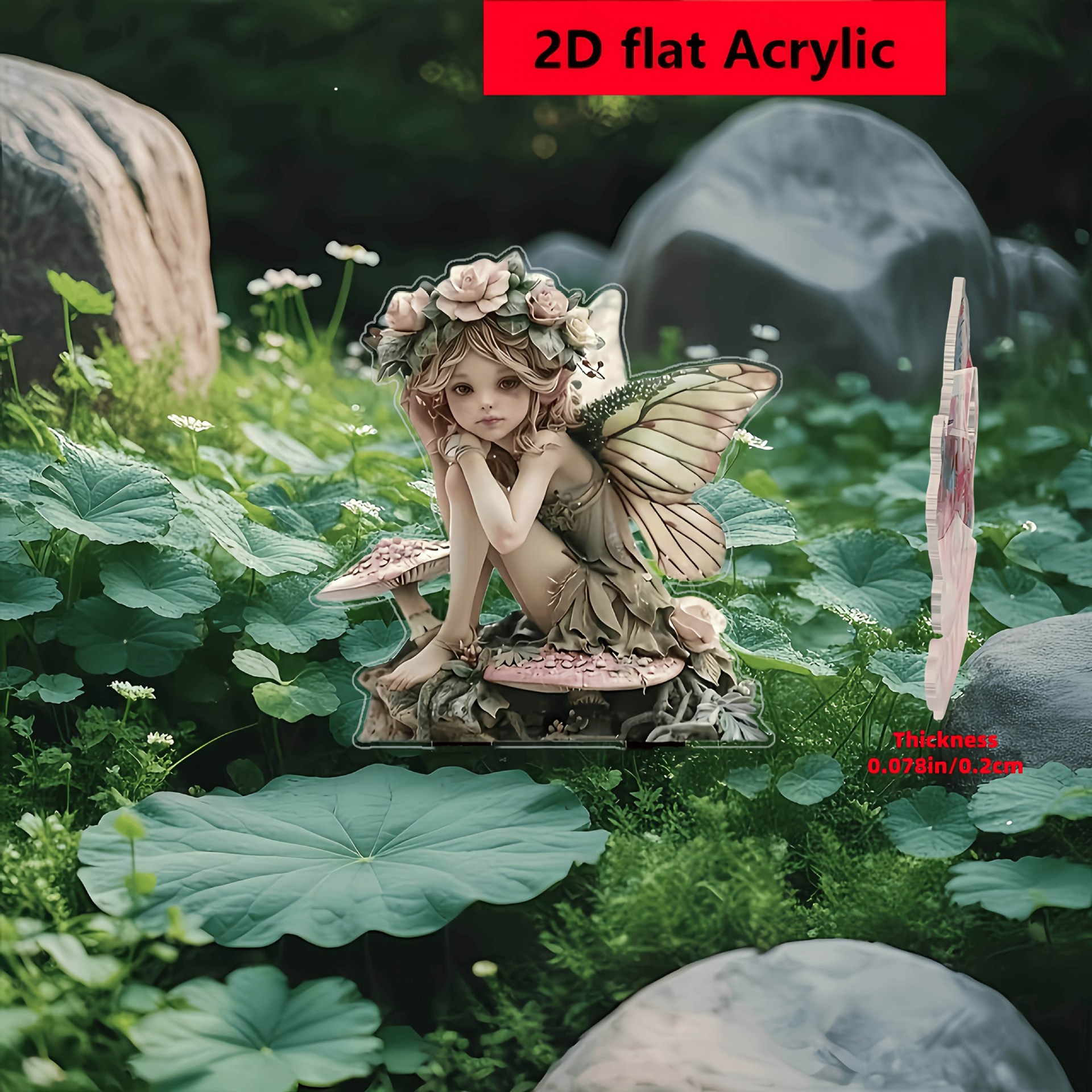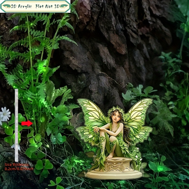 2D フラット、1 個 2D フラット魅力的な緑の羽の妖精の庭アクリルインサート屋外装飾、適切な