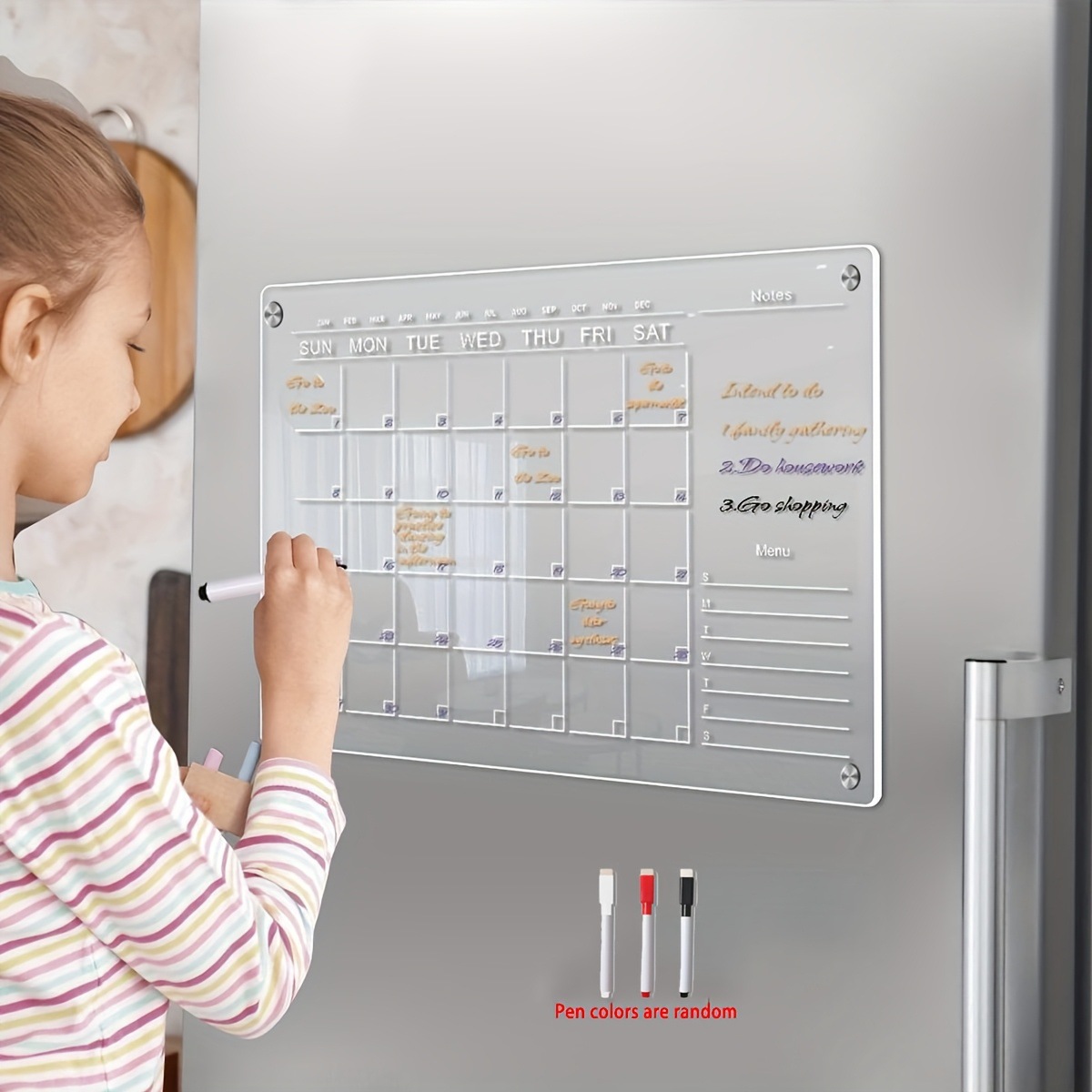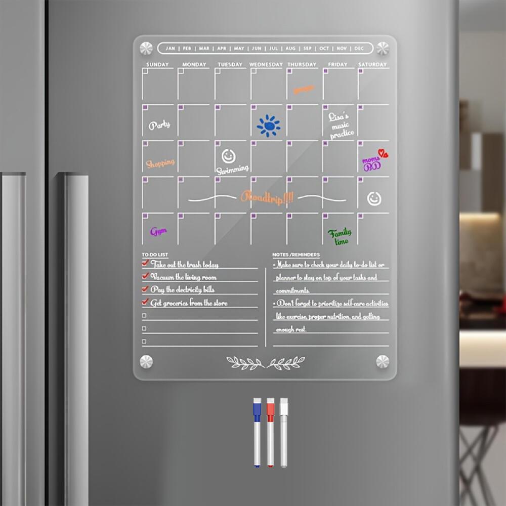 ドライイレースペン付き透明磁気冷蔵庫カレンダー - 月間および週間プラン、カラーのタスクと食事の3本付き