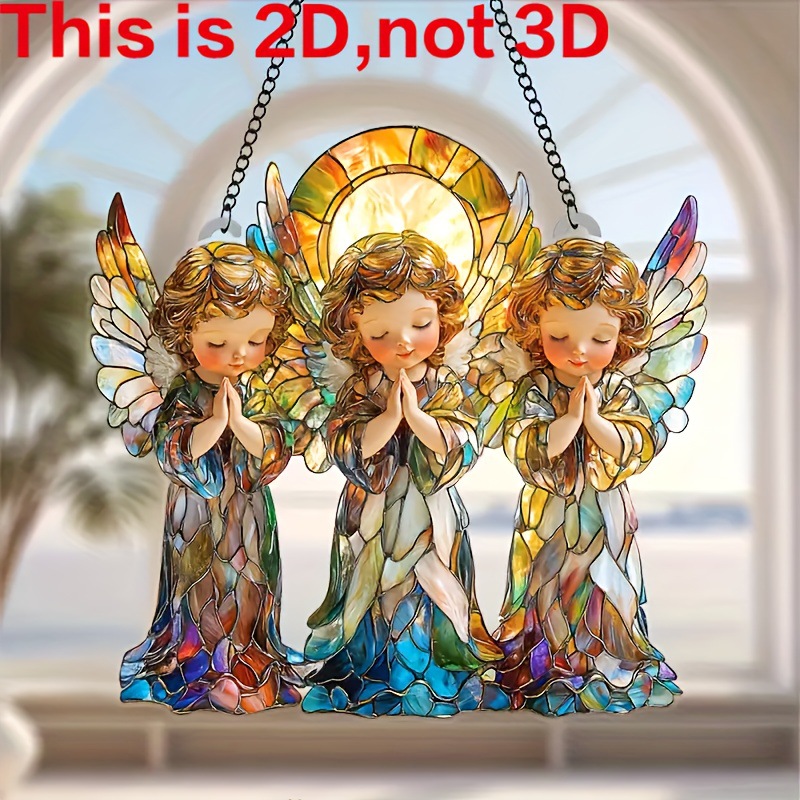 2D フラット、1 個 2D アクリル - 3 かわいい天使の壁掛け装飾 - 8inchx8.2inch D アクリル