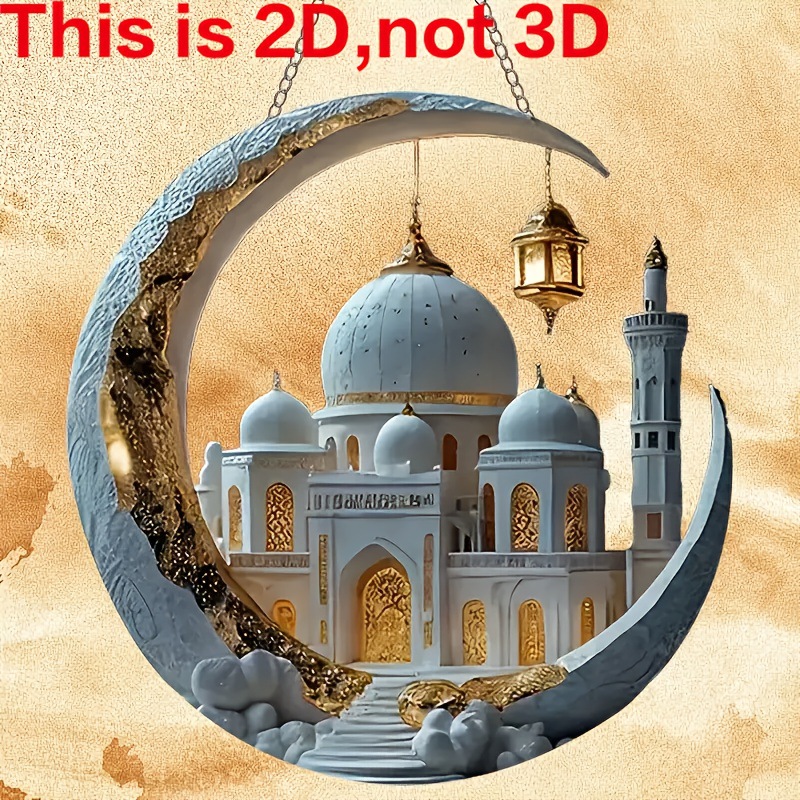 1 個の 2D アクリル壁掛けモスク装飾、サイズ 7.87x7.87inch、三日月と