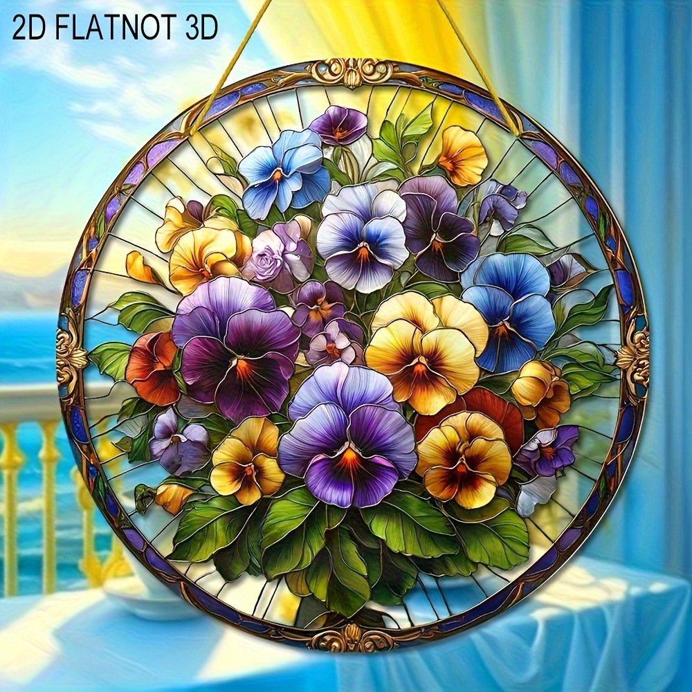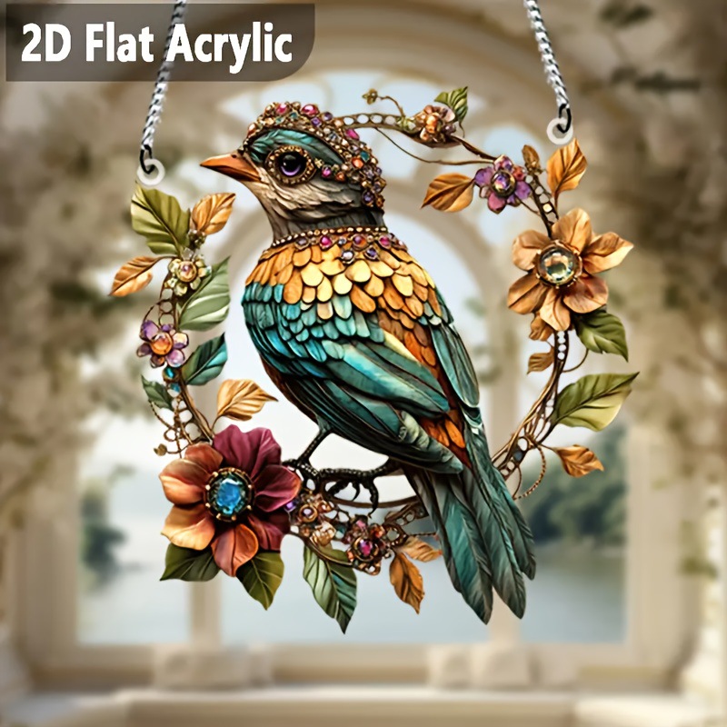 2D フラット アクリル ファンタジー プラント ハンギング - 8inchx8inch ボヘミアン スタイルのステンド グラス ルーム