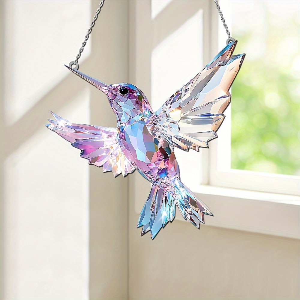 鮮やかなクリスタル ハミンバード サンキャッチャー ( 7.8inch x 7.8inch ) - カラーアクア