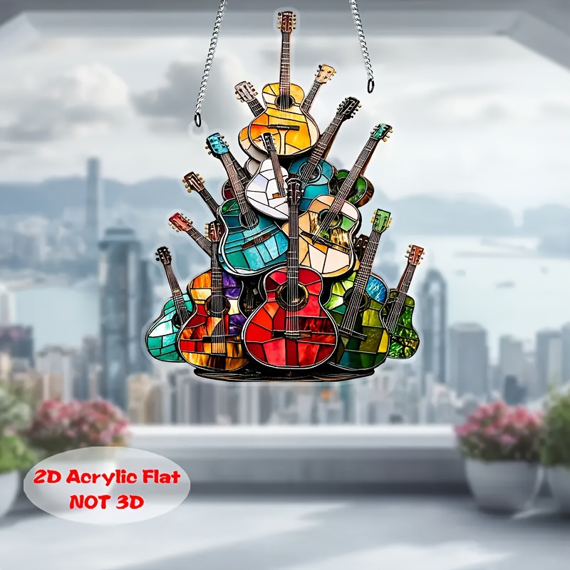 2D プレーン、鮮やかなアクリル ギター ツリー ウォール ハンガー - カラフルな 2D ボヘミアン ホームウェア