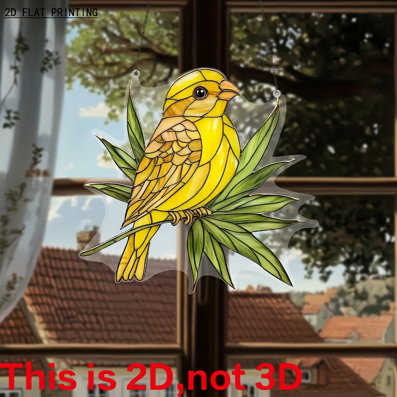 2D プレーン、1 個ボヘミアンスタイル 2D イミテーションガラスカナリア壁掛け装飾、7.87 インチ x 7.8
