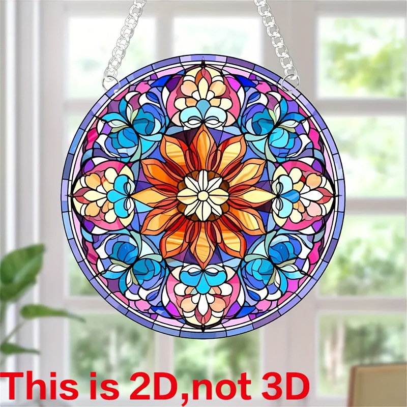 1 個の 2D アクリル - 鮮やかな曼荼羅壁掛け -、カラフルな花柄、チェーン付き