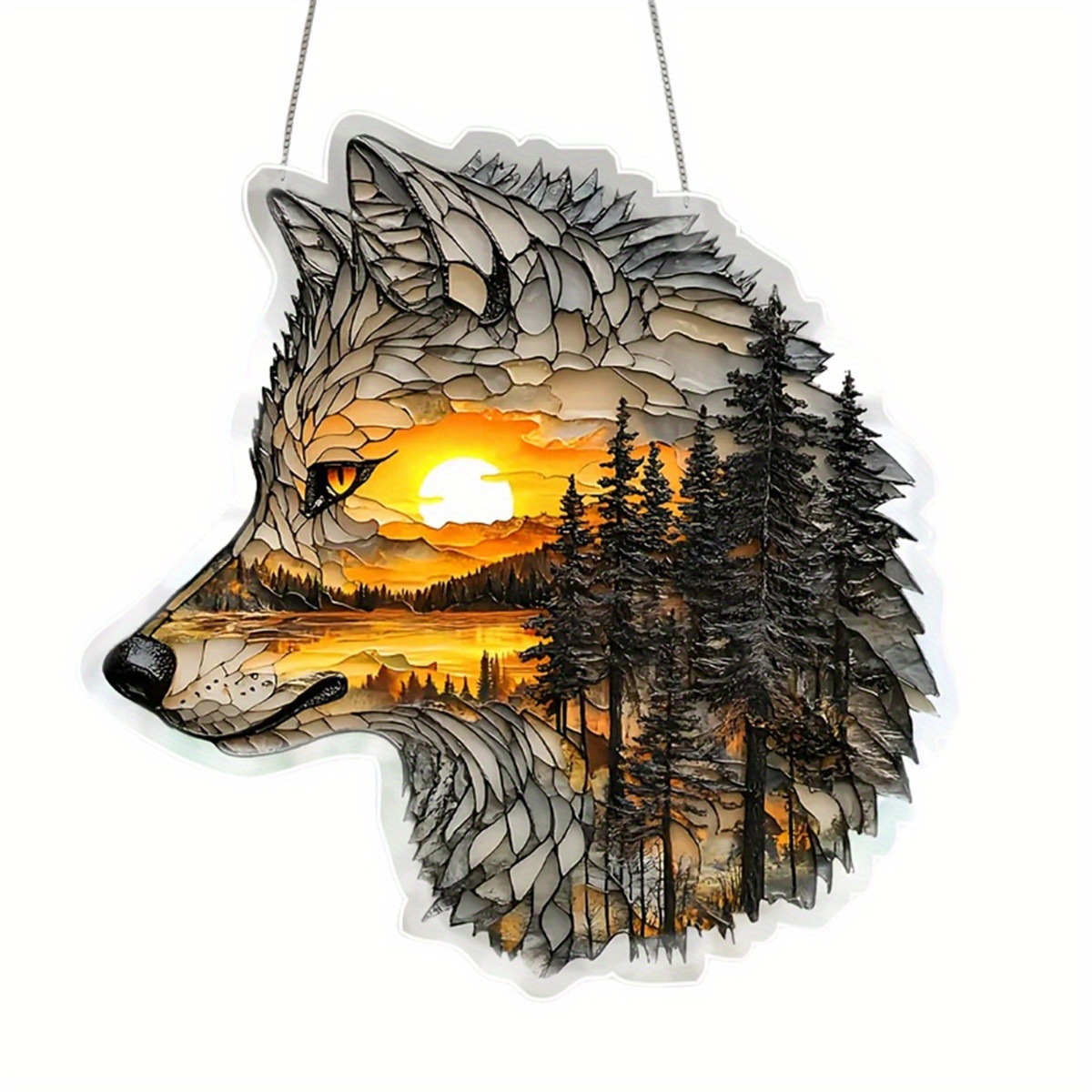2D フラットカラー馬/オオカミアクリルサンキャッチャー - 自然をテーマにした吊り下げ壁窓装飾、夕日