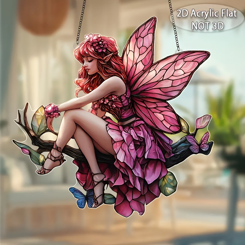 2D フラット、1 ピース ピンク フェアリー アクリル ハンギング オーナメント - 8inchx8inch ドリーム キャッチャー、適切