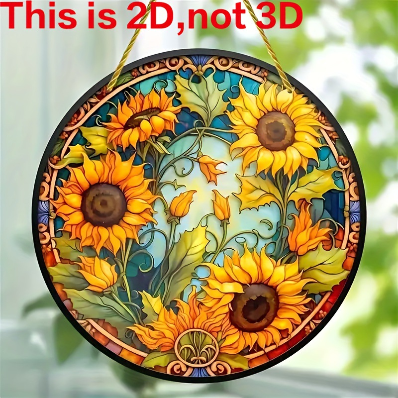 2D フラット ボヘミアン ひまわり ハンギング オーナメント - 2D アクリル フラワー アート、鮮やかな黄色のひまわり