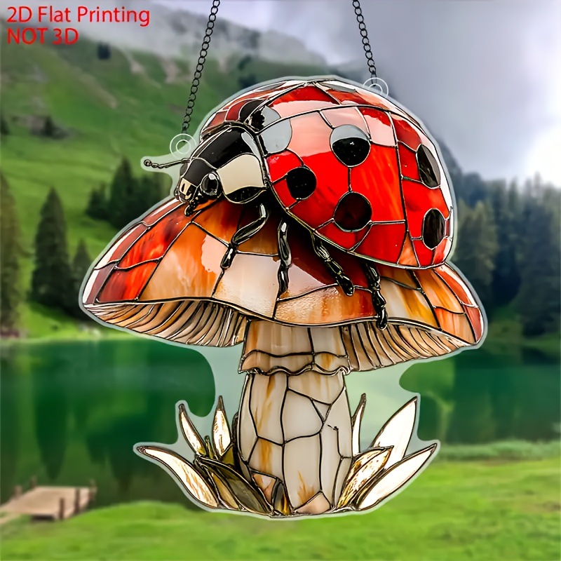 1 ピースボヘミアンスタイル 2D フラットアクリルてんとう虫キノコウォールアート - ハングチェーン付き鮮やかな庭