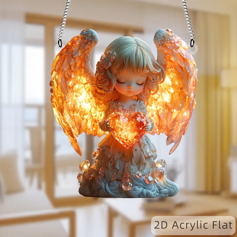 1 個の 2D クリスタルエンジェル壁掛け装飾、サイズ 6.9x7.9inch、ボヘミアンスタイル、多機能