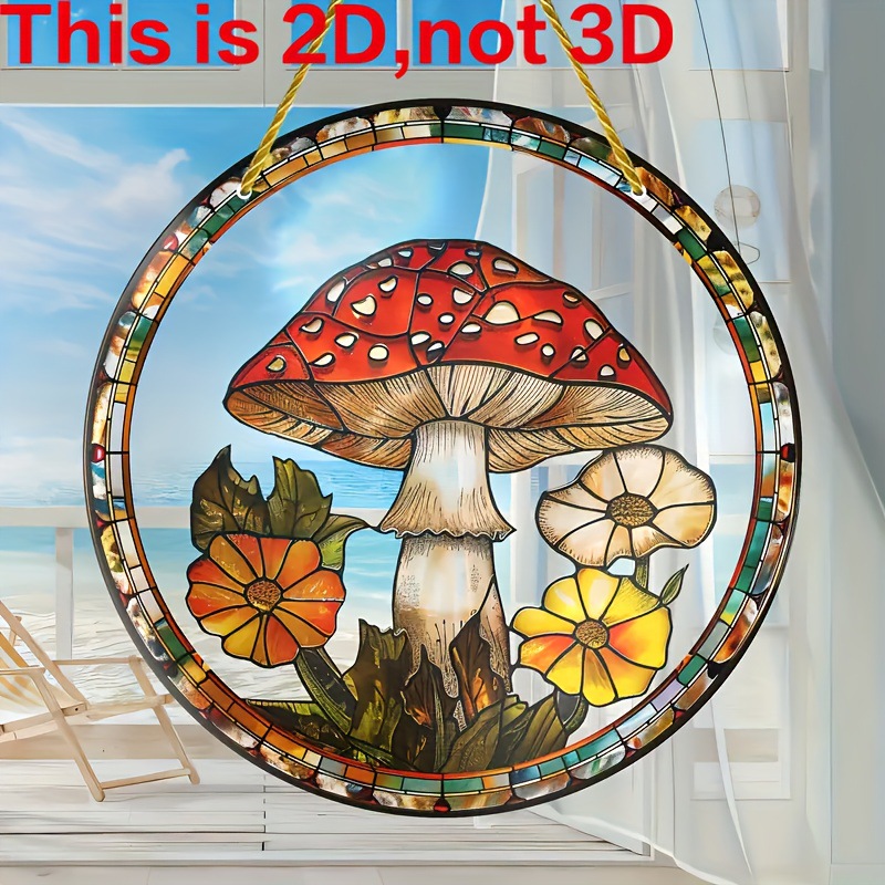 2D プレーン、ボヘミアン マッシュルーム ビニール サン キャッチャー 1 個、8x8inch - 秋のテーマ