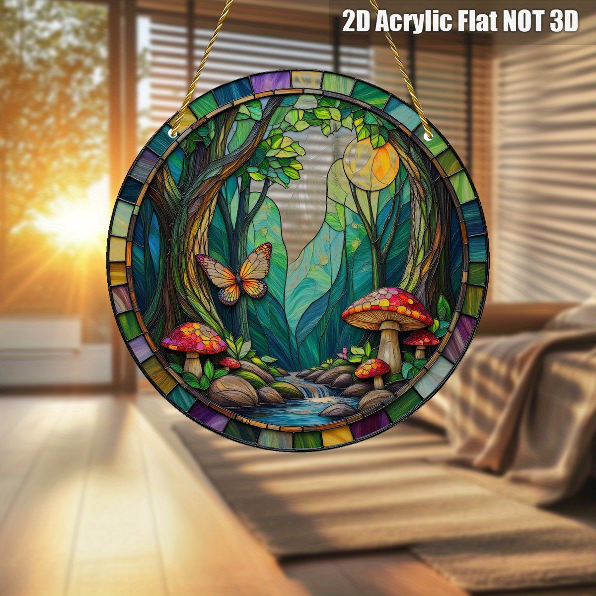 2D フラット、1 個のアクリル ライト キャッチャー - 森林アールヌーボー スタイルのステンド グラス効果、電気不要