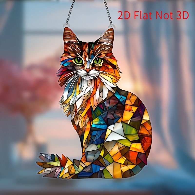 2D プレーン 1 個のカラフルなロングヘアの猫の太陽キャッチャー、6.2x8inch - キッチン、農家、
