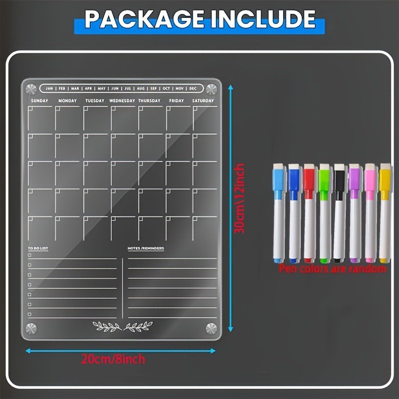ドライイレースペン付き透明磁気冷蔵庫カレンダー - 月間および週間プラン、カラーのタスクと食事の3本付き