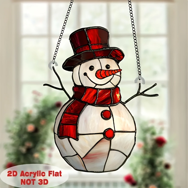 2D フラットレッド雪だるま吊り下げ装飾品、ボヘミアンスタイル、6x8inch 耐候性屋内および屋外のホリデーデコレーション