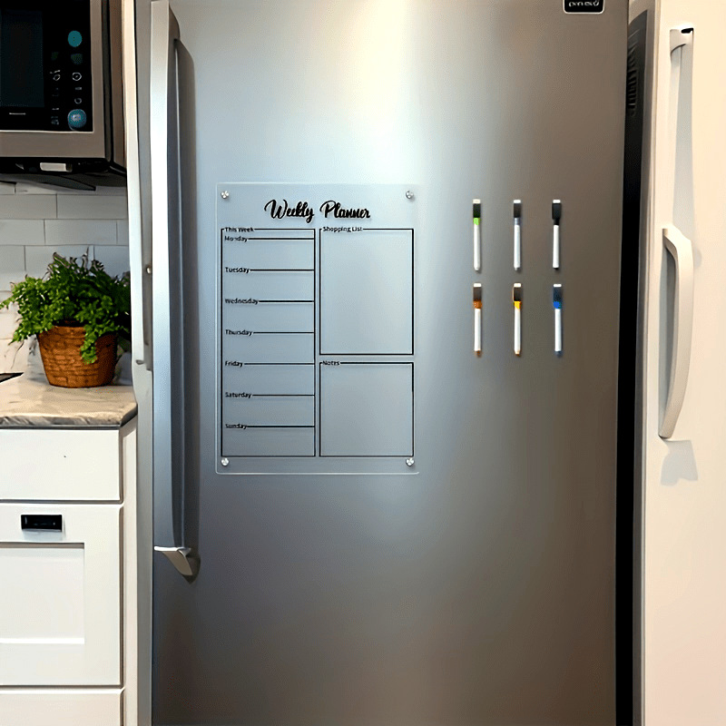 冷蔵庫用アクリルドライイレース食事プランナーボード - マーカーペン付き透明ウィークリーメニュープランナー