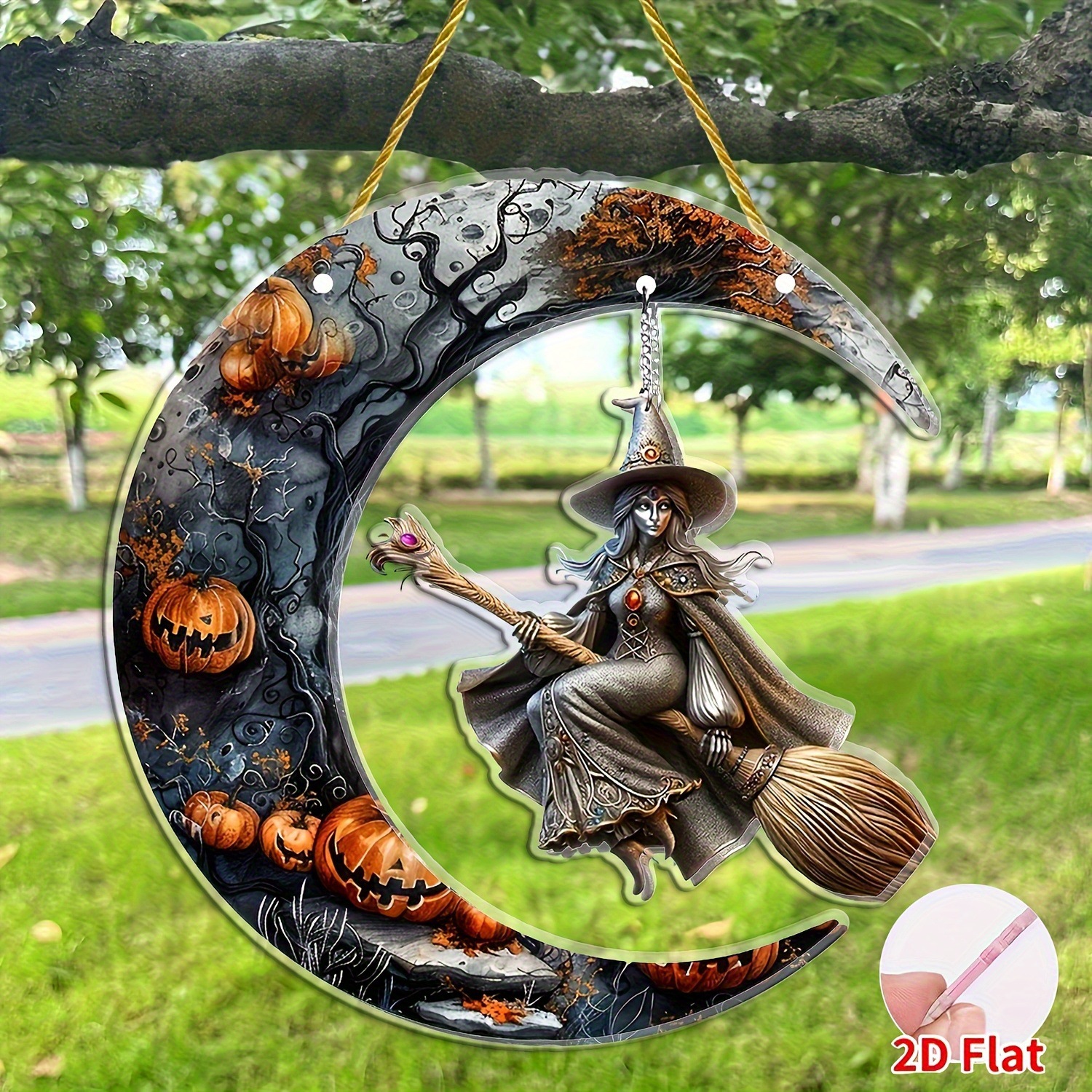 2D プレーン、2D プレーン ハロウィン ウィッチ クレセント ペンダント - カラフルなアクリル ライト キャッチャー、7.9
