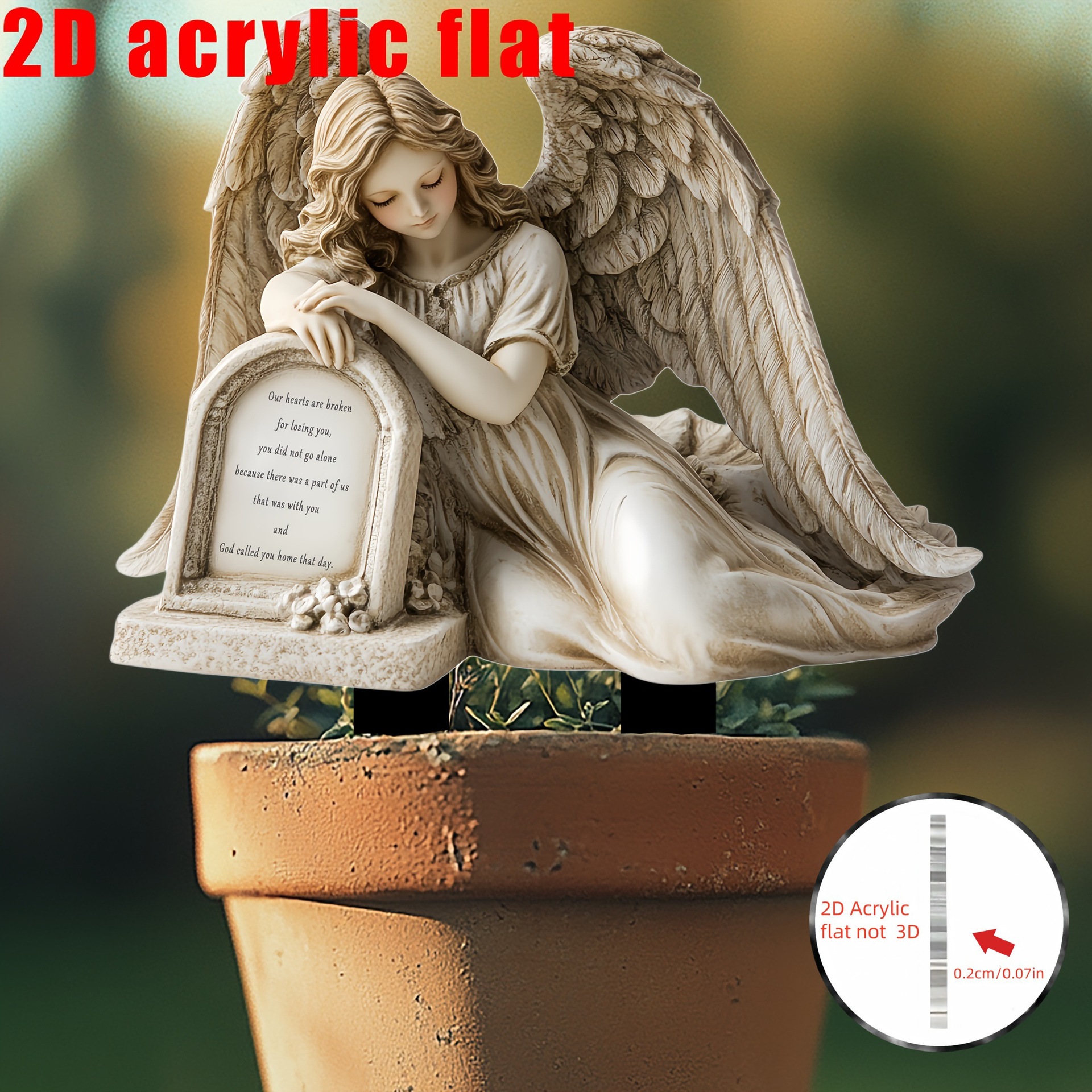 2D プレーン、哀悼の翼付き 2D プレーン アクリル エンジェル ガーデン パイル - 屋外装飾彫刻