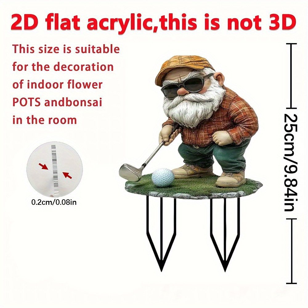 2D フラット、1 個のレトロなゴルフノームガーデンインサートカード - レトロなアクリル屋外芝生装飾、