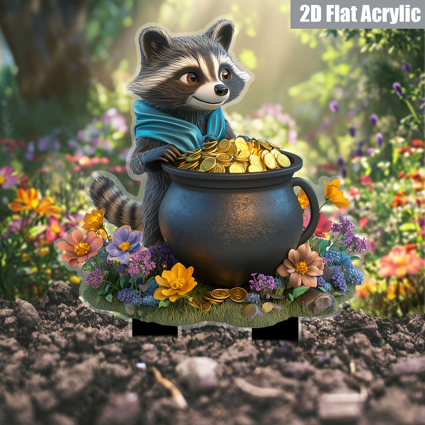 2D プレーン、1 個、2D プレーン アクリル、アライグマとゴールデン ジャー、アクリル ガーデン パイル、ガーデン