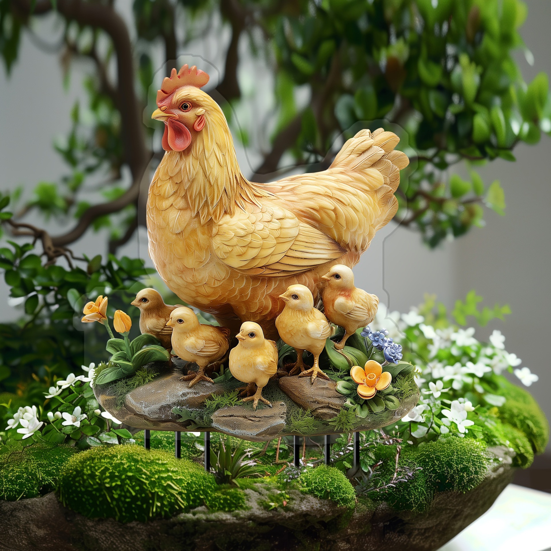 2D プレーンの魅力的な黄色のひよこと子供用アクリル ガーデン パイル - カントリー スタイルの素朴な装飾、