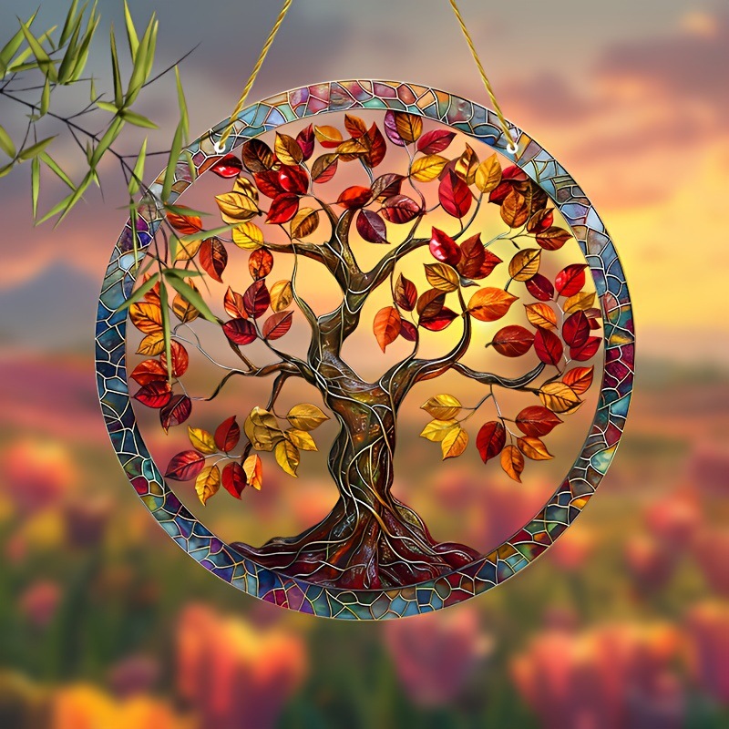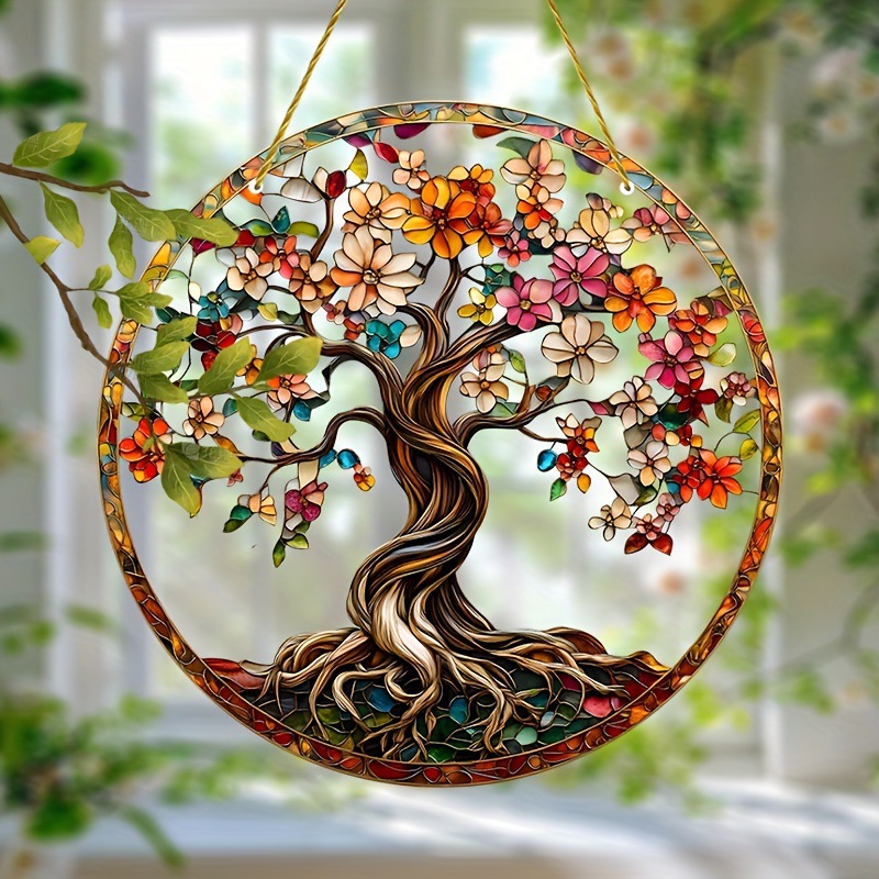 1ピース生命の木2Dフラットアクリルガーデンサンキャッチャー、染色窓吊り下げ、精神家