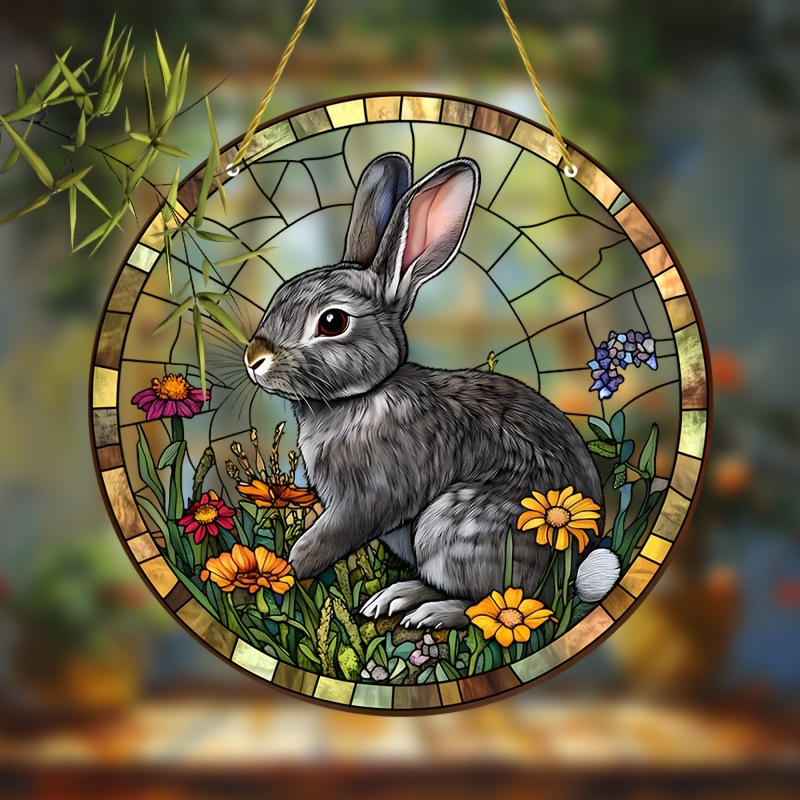 一匹、9x9インチの2D平面アクリルウサギ花園日光吊り飾り、動物テーマプラスチック窓