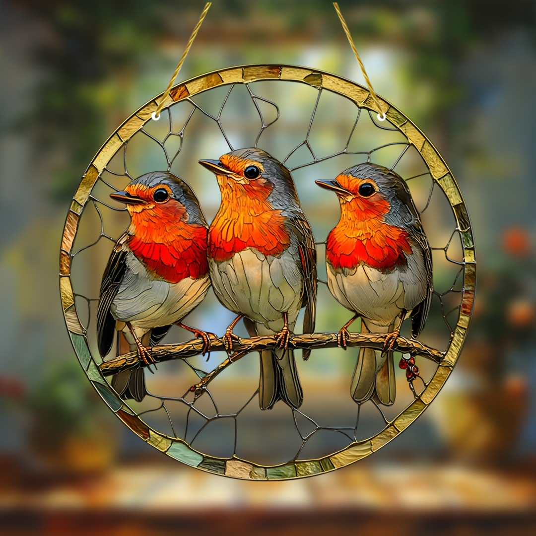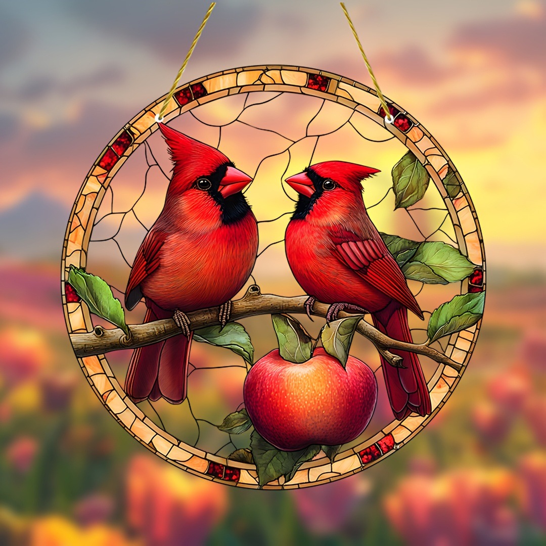 1ピース赤い鸟ガーデン日光キャッチャー、9X9インチ染色アクリル窓サスペンション、2Dフラット动物