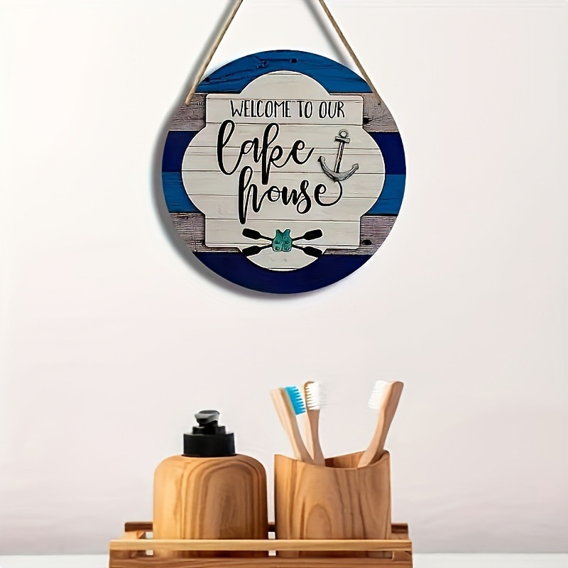 1つは私达の湖のほとりの小屋の円形の木のロゴへようこそ、芸术の装饰のスタイル、制造木