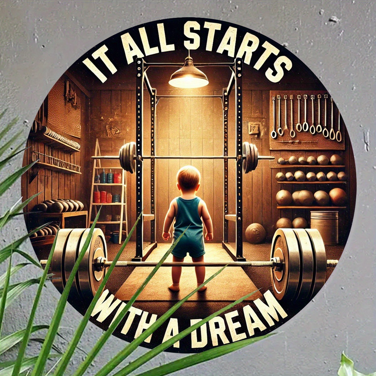 激励志「すべて夢から始まった」円形アルミ製壁マーク-7.8x7.8インチ、ホームジム
