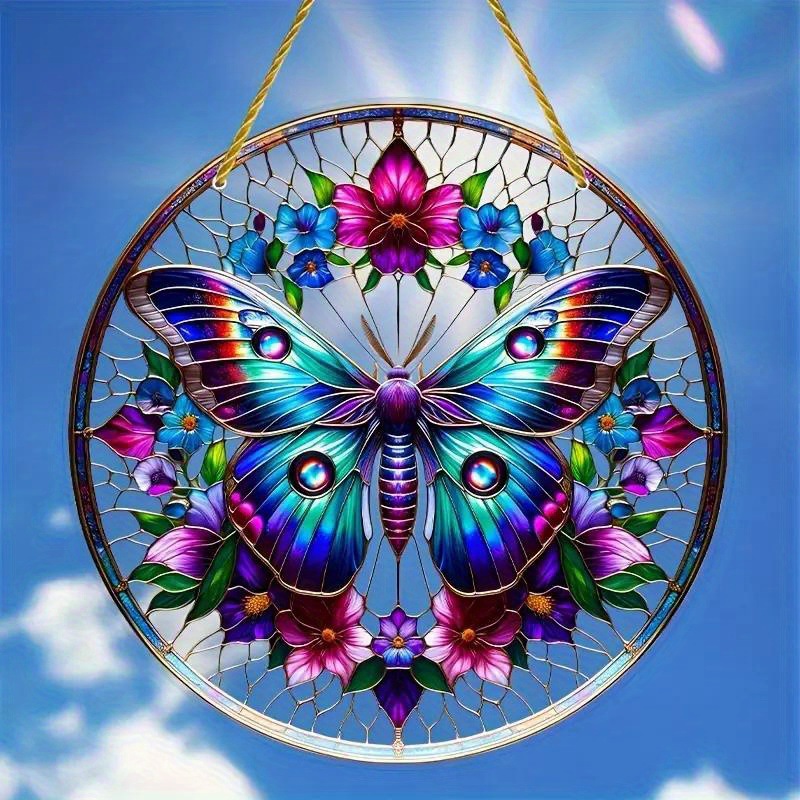 1件、半透明ファンタジー蝶花捕光器-円形装飾品、窓や庭に適しています。
