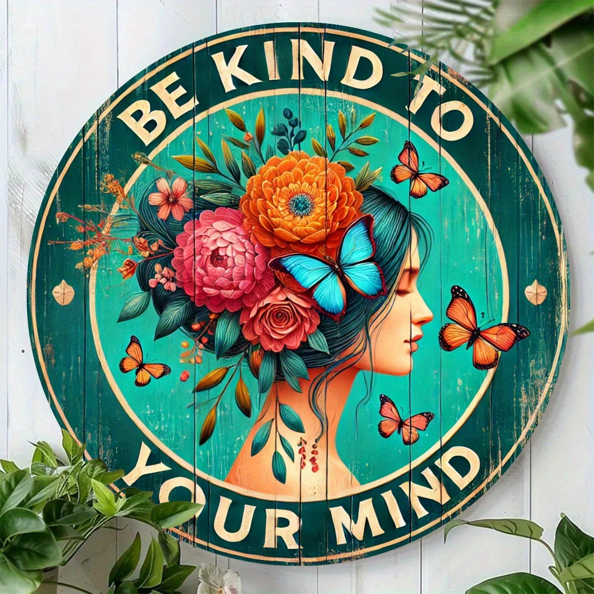 あなたの心に優しい」円形アルミ製ロゴ-7.8x7.8インチ、花卉と蝶のデザイン