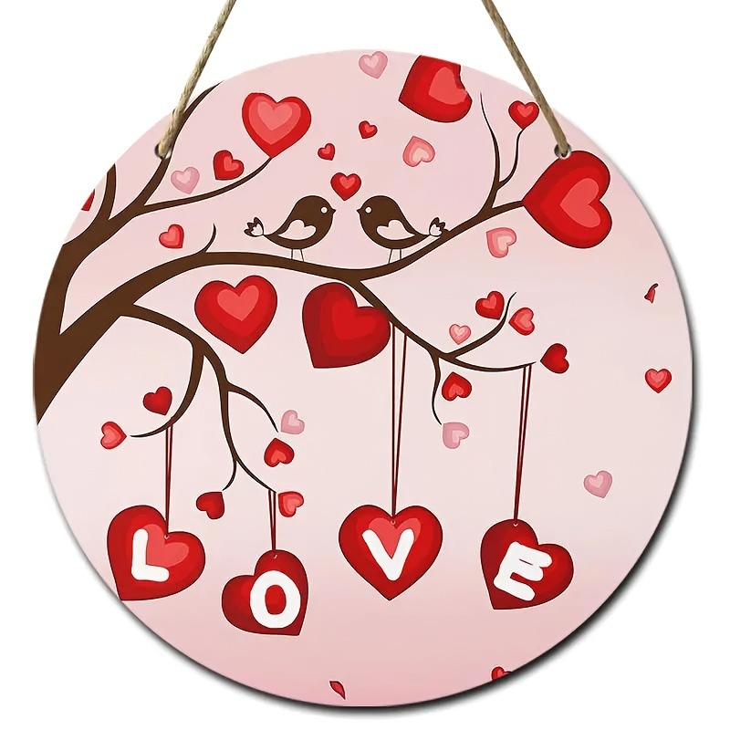魅力的な8インチの木製バレンタインデーの花輪看板-家庭、バー、カフェ、農家に適しています