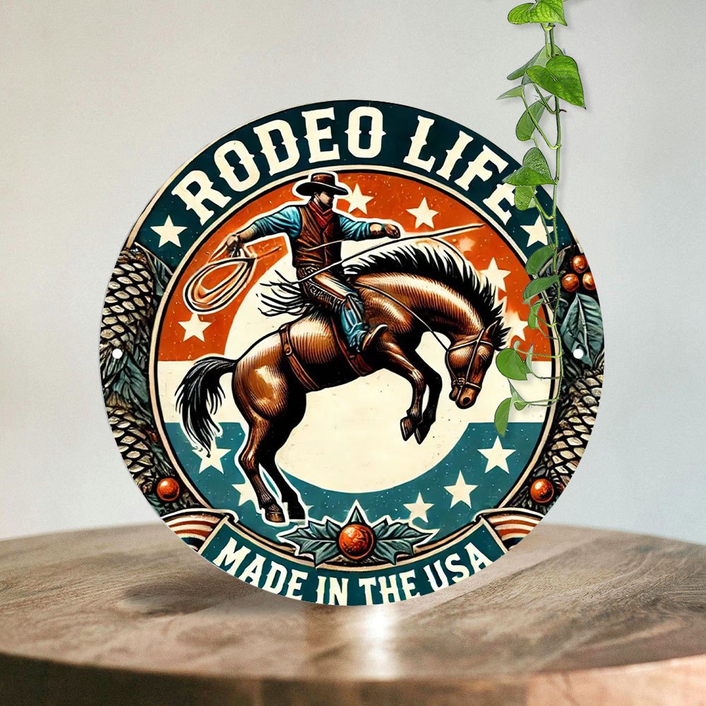 西部カウボーイ生活7.8インチ円形アルミ看板-春装飾選択、家庭と玄関