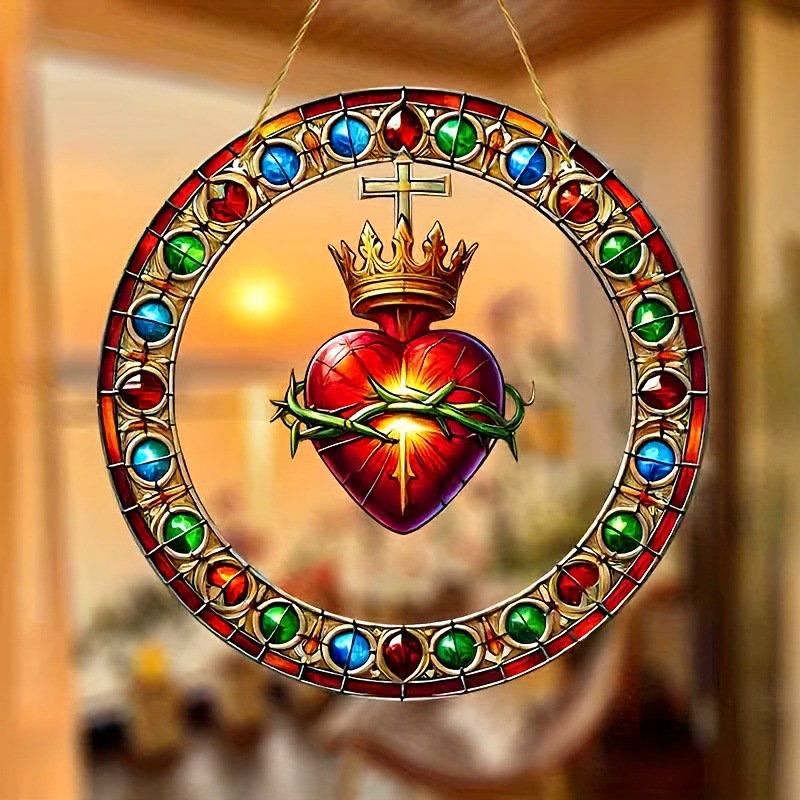 1つ、イエスの聖心8 "x 8" アクリル日光捕手、華麗なスタイルの壁面装飾、人の心を奮い立たせる