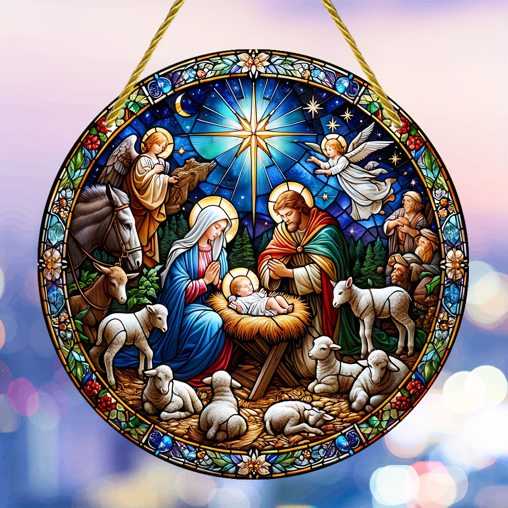 祭りシーン日光キャッチャー-8インチ円形アクリル窓ペンダント、伝統的な季節デザイン-