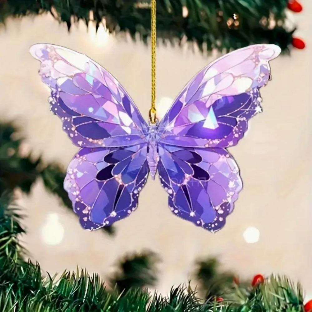 紫色のクリスマスのきらめきの車の蝶のペンダント、2Dのアクリルのカップルの蝶のペンダント、流行の鍵のペンダント