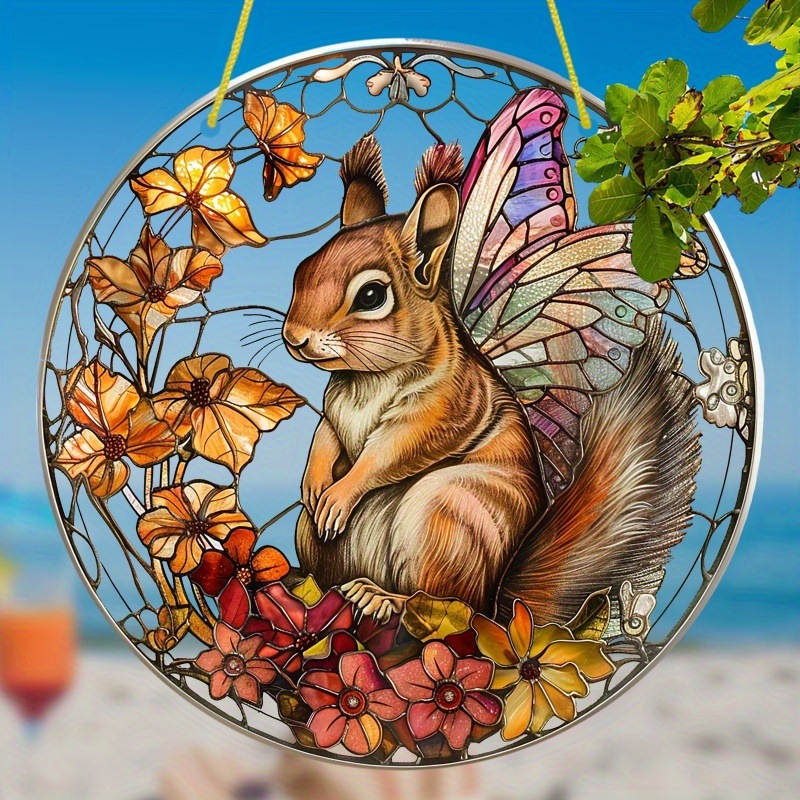 レトロなスタイルのアクリルの夢捕手、7.87インチの丸いリスの翼付きカラーガラス