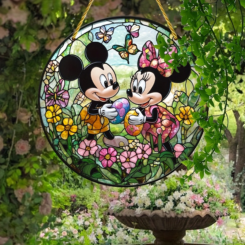 ミッキーマウスとミニーマウスのイースターキャッチャー-1枚のカラーアクリル窓がぶら下がっていて、適しています