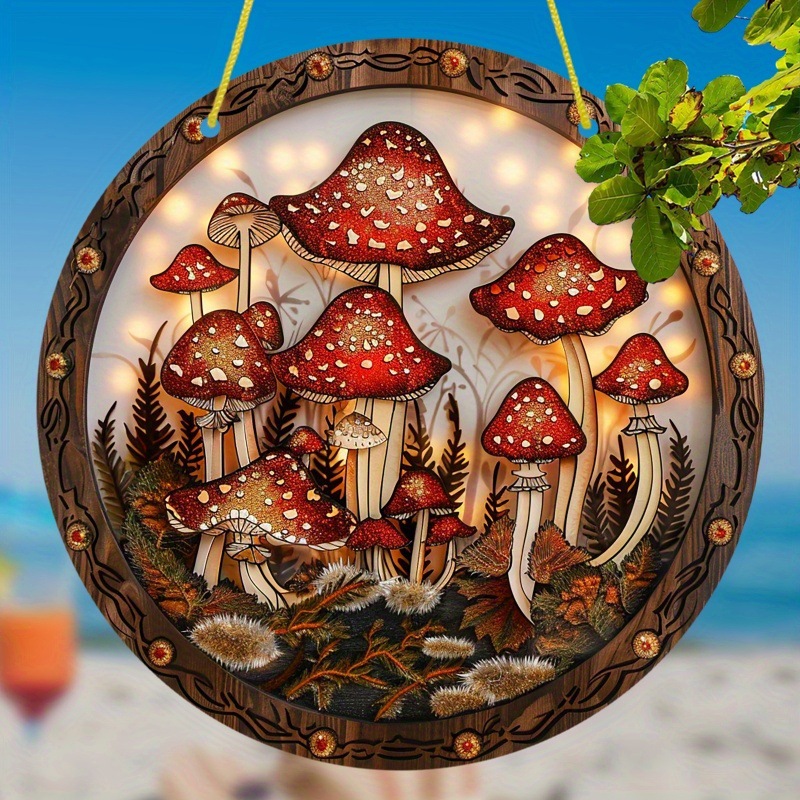 レトロ調キノコ捕夢網アクリルマーク-7.87インチ円形装飾壁芸術、木付き