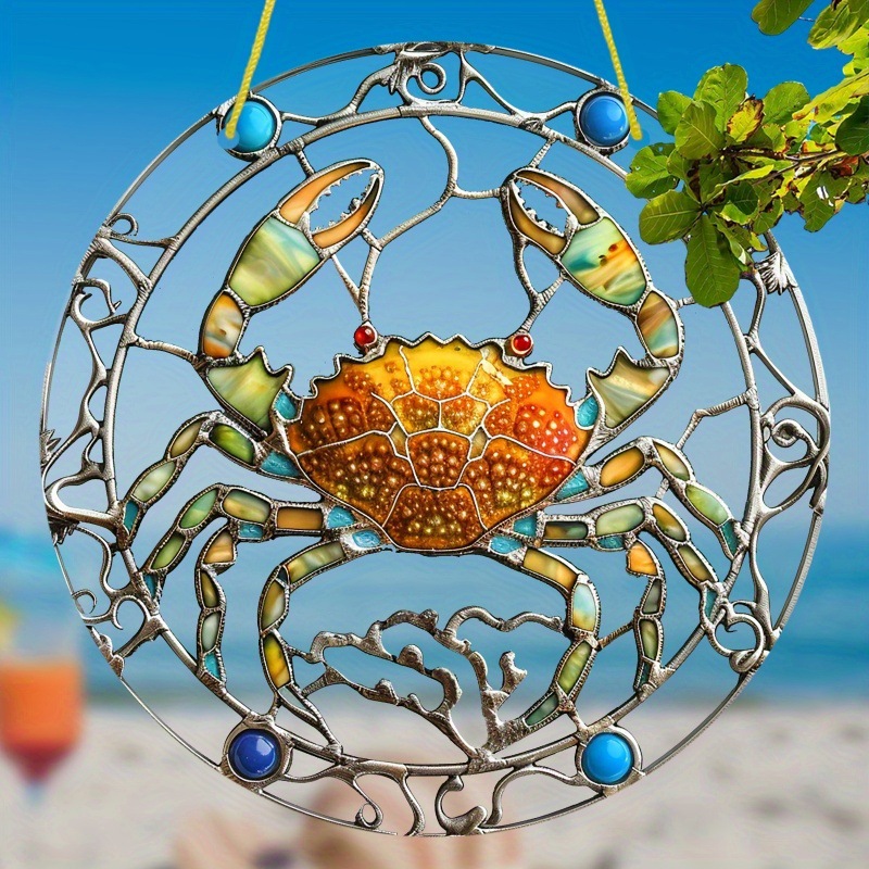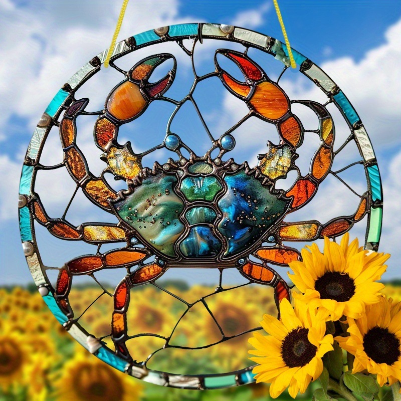 1pcドリームキャッチャー、アクリルマーク、カニ、カラーガラス窓掛け、円形マーク、窓付け